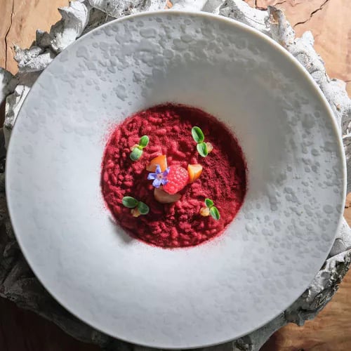 Table étoilée du DV Chalet, Dolomieu propose une cuisine contemporaine ancrée dans le terroir alpin. Le menu dégustation dessine un parcours à travers les vallées environnantes, déclinant produits de saison et gestes précis. Le maître-sommelier renouvelle régulièrement sa sélection au verre, puisant aussi bien dans les caves italiennes qu'au-delà des Alpes, pour des accords mets-vins soignés.