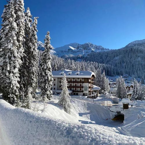 Ancienne ferme de la famille Maffei devenue pionnière de l'hôtellerie écoresponsable dans le Trentin, cette adresse de vingt-cinq chambres cultive l'art de recevoir à l'italienne. Sols chauffants, balcons privés contemplant les Dolomites de Brenta, cave en pierre bien garnie et piscine panoramique composent le décor. Une navette gratuite dessert les pistes tout au long de la journée, tandis que la situation légèrement excentrée préserve des foules hivernales.