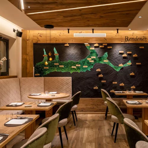 Au sein du Lefay Resort dominant Pinzolo, la table étoilée du chef Matteo Maezza compose ses menus selon trois étages d'altitude dolomitique. Du fondovalle surgit un poisson blanc du lac de Garde au lait de pin mugo ; des hauteurs, une selle de chevreuil en croûte de seigle, gratin de cardon et moelle. La carte des vins, riche en champagnes, prolonge cette ascension gastronomique.