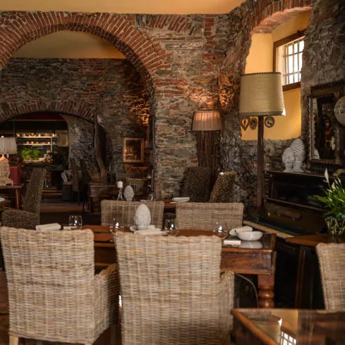 Sous les voûtes d'une ancienne huilerie de 1590, à quelques pas du centre de Sestri Levante, Le Cantine cultive un parti pris radical : aucun poisson, uniquement des viandes cuites au bois d'olivier et des légumes issus du potager attenant. Cette table rustique et romantique, ornée de mille détails, privilégie les vins régionaux de caractère pour accompagner une cuisine résolument terrienne face à la Méditerranée.