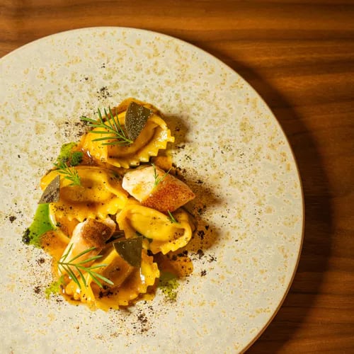 Ivan Maniago, chef et propriétaire, orchestre une cuisine ouverte dans un espace minimaliste où 90 % des produits proviennent de petits producteurs ligures. Trois menus dégustation dessinent des parcours distincts : Altitudine remonte de la côte vers l'arrière-pays, Profondità explore les trésors marins, Vege-table célèbre le végétal. Une table étoilée pour qui recherche une cuisine italienne contemporaine ancrée dans le terroir.