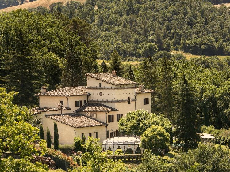 Ce palazzo historique domine un paisible bourg perché d'Ombrie, offrant depuis sa tour romantique des panoramas saisissants sur la campagne de la province de Terni. Sept chambres lumineuses et une piscine rafraîchissante occupent le vaste domaine, idéal pour les réunions familiales ou les célébrations intimes. L'adresse séduit particulièrement les familles en quête d'espace et les couples rêvant d'un mariage dans un décor italien d'exception.