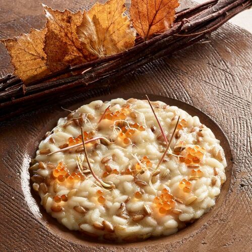 Le parquet séculaire grince sous les pas dans cet ancien moulin du XVIIe siècle, où le chef Alessandro Gilmozzi compose un menu dégustation unique célébrant les Dolomites. Herbes sauvages, écorces, lichens et résines se mêlent aux fromages rares, au gibier intense et aux poissons d'eau douce. Une étoile Michelin et une étoile verte saluent cette cuisine créative et ses engagements durables.