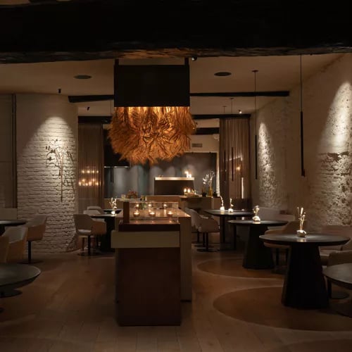 Sous la charpente apparente de l'Irenekerk, église de 1891 aux murs noirs bruts, le chef Sven Nijenhuis orchestre une cuisine de produits locaux aux accents français. La table du chef ceinture la cuisine ouverte, théâtre de préparations minutieuses ; à l'étage, un bar sculpté en forme d'orgue rappelle le passé sacré des lieux. Joues de porc confites, aubergine laquée et jus de veau au fenugrec témoignent d'un savoir-faire remarquable.