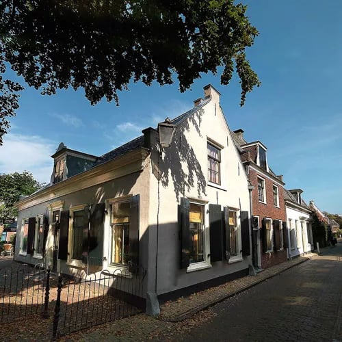 Dans l'ancienne demeure de Koosje Edema, figure tutélaire du village, le chef Roland Veldhuijzen perpétue un savoir-faire classique couronné d'une étoile Michelin. Ses vinaigrettes et huiles d'olive parfumées subliment un tartare de veau accompagné de langoustine poêlée, relevé au ponzu et crémé au foie gras. Mobilier ancien, lumière tamisée et terrasse au pied de l'église composent un décor aux accents méditerranéens.