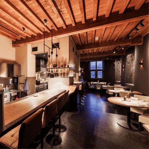 Dans une ancienne ferme reconvertie où lustres imposants et art contemporain composent un décor à la fois branché et intimiste, le chef André Gerrits déploie une cuisine française moderne couronnée d'une étoile Michelin. Légumes cultivés sur place, produits néerlandais de premier choix, influences mondiales assumées : son chateaubriand en croûte feuilletée, spinach et crème d'ail fermenté, illustre une créativité sans frontières servie avec maîtrise absolue.
