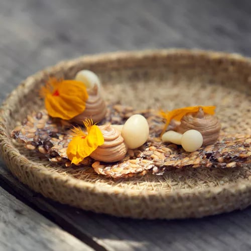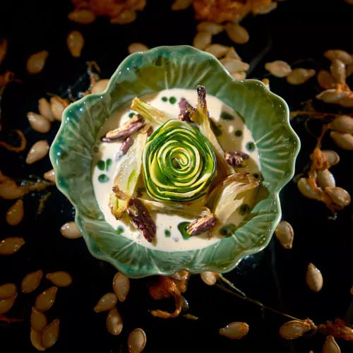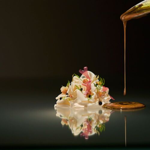 César Vieira puise dans le folklore madérien pour composer une cuisine d'auteur ancrée dans la tradition insulaire. Sa cuisine ouverte dévoile l'élaboration de créations comme le Poncha aux crevettes côtières, relecture audacieuse du breuvage des pêcheurs. Le midi propose des formats courts en trois ou quatre services, tandis que le soir déploie des menus dégustation en cinq ou sept temps, pensés pour les dîners d'exception.