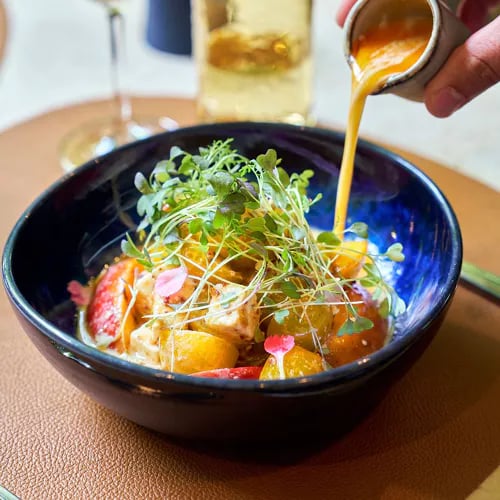 Dominant l'Atlantique depuis les hauteurs du Cliff Bay, Avista Ásia déploie une cuisine fusion où influences japonaises, chinoises et coréennes dialoguent avec les saveurs méditerranéennes et madériennes. Le chef Rui Pinto propose quatre formules de dégustation, du parcours découverte en trois temps jusqu'au menu premium en sept services, révélant un donburi d'anguille fumée aux œufs de truite et un dessert mariant fruit de la passion local et yuzu nippon.