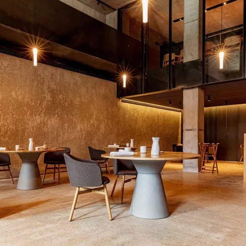 Béton rose et gris, acier apparent, cuisine ouverte sur la salle : ce dérivé décontracté du restaurant étoilé d'Alejandro Serrano assume pleinement son esthétique industrielle. La carte revisite les créations de la maison mère—carpaccio de gambas façon ceviche, tortilla ouverte aux kokotxas de morue—dans un esprit ludique et accessible. Le menu du jour permet de goûter à cette cuisine moderne sans cérémonie.