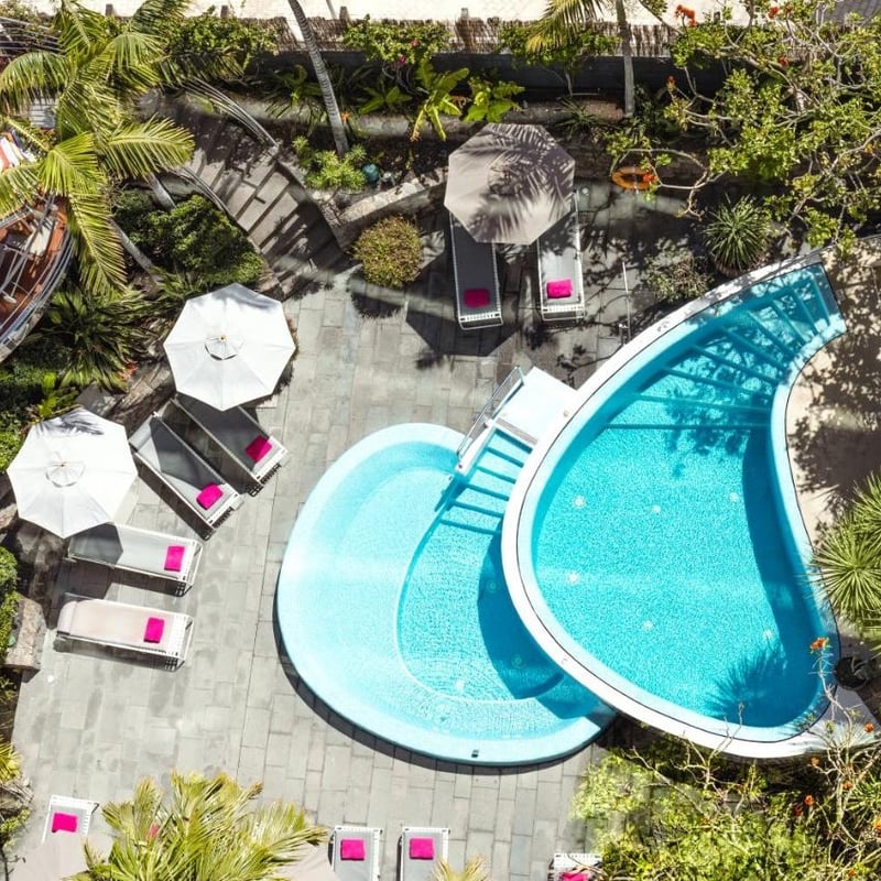 Derrière sa façade rose pâle, le plus ancien hôtel des Canaries déploie fresques restaurées et toiles du XIXe siècle ayant séduit Churchill comme Maria Callas. Deux tables signent l'excellence gastronomique : Poemas, étoilé, où les frères Padrón subliment le terroir canarien, et MuXgo, couronné d'une étoile verte pour sa cuisine locavore. Jardins de palmiers, piscine à débordement face à l'océan et rooftop réservé aux suites complètent ce refuge historique.