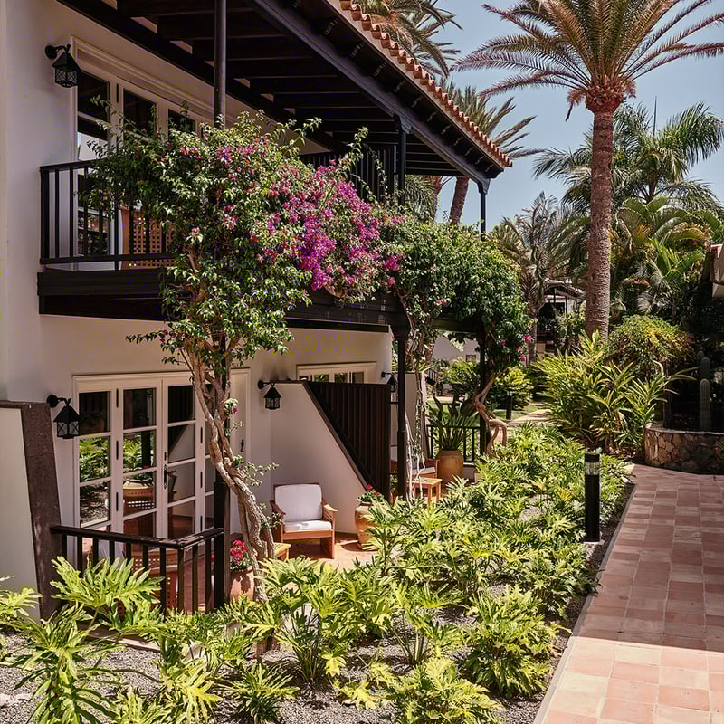 Une élégance coloniale imprègne ce domaine de Maspalomas, où des lits à baldaquin en bois sombre ouvrent sur des balcons enveloppés de végétation luxuriante. La piscine d'eau salée trône au milieu de jardins soignés, tandis que le spa propose jacuzzi, sauna et séances de physiothérapie. Le restaurant méditerranéen privilégie les produits d'une finca voisine, et le piano-bar anime les soirées en musique. Cinq parcours de golf attendent à proximité.