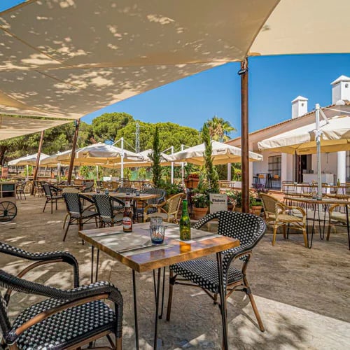 Sur le domaine familial de Xanty Elías, entre cultures maraîchères et espaces naturels protégés, cette table Bib Gourmand arbore l'Étoile Verte pour son engagement durable. La cuisine ancre la tradition andalouse dans un répertoire bio et de saison : poissons de l'estuaire, riz mijotés en cocotte d'argile, jarret de sanglier braisé dix-huit heures puis découpé devant les convives. Une adresse de caractère aux portes de Huelva.