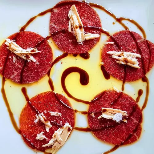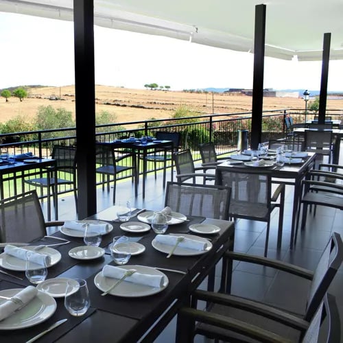 Des formes de chaussures ornent les murs de la salle à manger, clin d'œil au passé cordonnier de Valverde del Camino, tandis que de larges baies vitrées ouvrent sur une terrasse verdoyante. La cuisine revisite la tradition andalouse à travers des préparations modernisées, proposées à la carte ou en menus dégustation accompagnés de vins. Un comptoir à tapas décline ces mêmes plats en format réduit, parfait pour une halte légère près du musée ethnographique voisin.