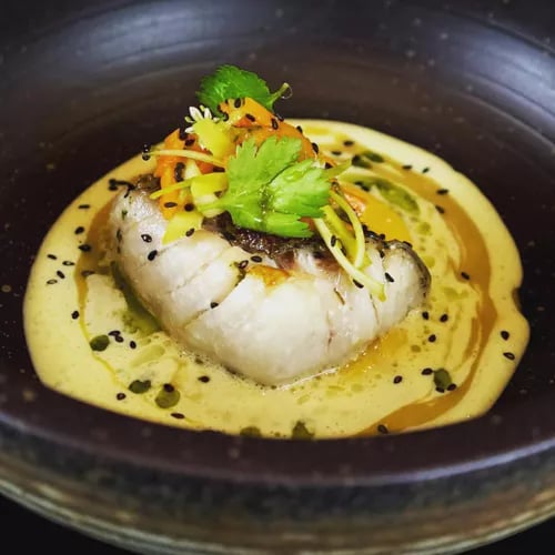 Derrière les fourneaux ouverts de cette adresse intimiste de Playa Blanca, le chef Nicolás Machín, surnommé Colacho, compose un menu dégustation unique ancré dans le terroir de Lanzarote. Son potager approvisionne directement la cuisine en légumes d'une fraîcheur irréprochable. Le longe de cherne, accompagné d'un pisto de légumes et de pommes de terre crémeuses au thym, illustre une cuisine d'île revisitée avec précision et sensibilité contemporaine.
