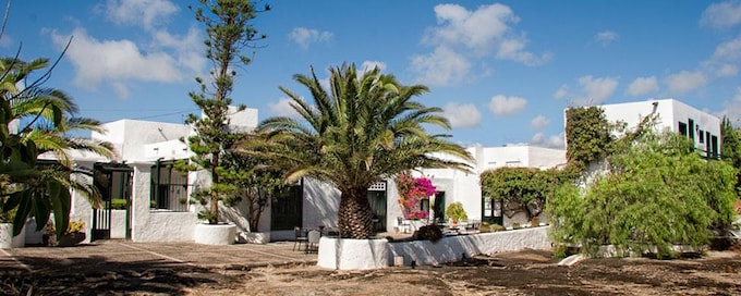 Murs de pierre volcanique et bougainvilliers en cascade caractérisent cette ferme canarienne du XVIIIe siècle, plantée au milieu des vignobles du centre de Lanzarote. La bâtisse blanchie à la chaux attire voyageurs et habitants vers sa table réputée, tandis que jardins et terrasses ensoleillés offrent une retraite paisible entre deux escapades viticoles. Les suites accueillent les familles, les chiens aussi.