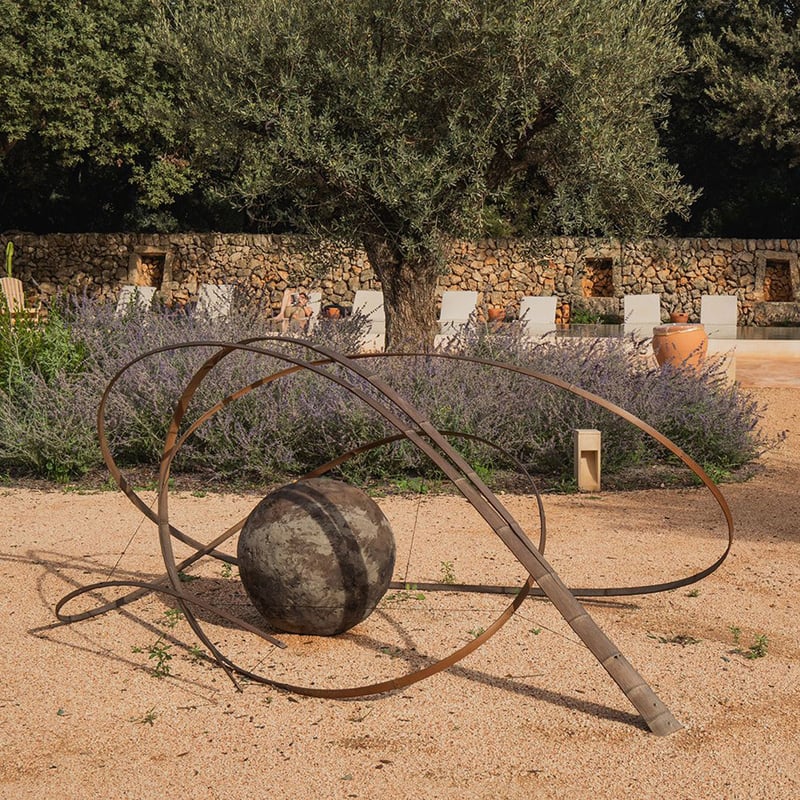 Sur les hauteurs de la côte nord de Minorque, d'anciennes bâtisses agricoles en grès et chaux abritent onze chambres aux poutres d'origine. Le domaine de 800 hectares déroule ses sentiers côtiers jusqu'à la plage de Cala Calderer, tandis que deux piscines à débordement embrassent la campagne environnante. Le restaurant de fruits de mer puise dans les vergers et potagers du domaine, ancrant chaque repas dans ce terroir préservé.