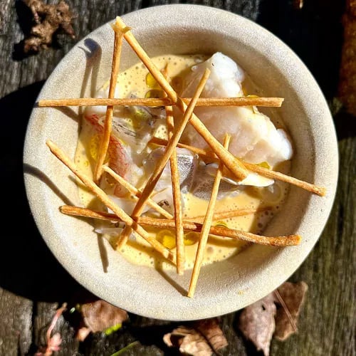 Isolée dans les montagnes des Asturies, cette table champêtre attire une clientèle fidèle, séduite par la cuisine de Dulce Martínez. La cheffe-propriétaire signe une gastronomie traditionnelle d'une finesse remarquable : pain de maïs au fromage Afuega'l Pitu, pitu de calella con arroz préparé selon l'usage ancestral. Deux menus dégustation, desserts maison soignés. Réservation indispensable, les places s'arrachent.