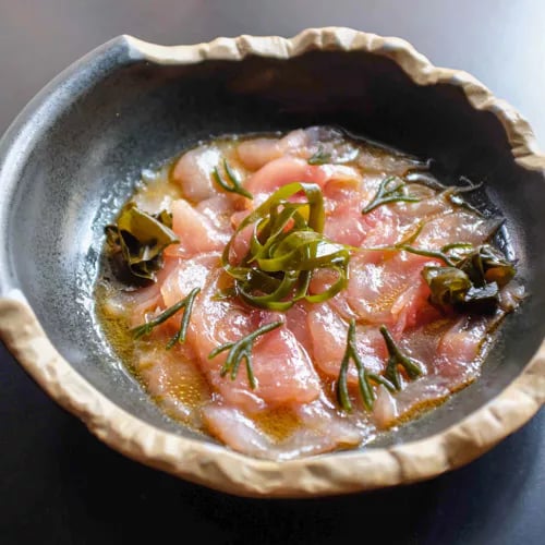 Sur les rives du Nalón, le chef Pedro Martino a repris l'ancienne adresse étoilée L'Alezna pour y apposer son nom. Sa carte se décline en deux volets : Orígenes Tradición célèbre le terroir asturien à travers le Caldo de Pote, ancêtre de la fabada, tandis qu'Orígenes Degustación revisite ce patrimoine en bouchées raffinées—Caramietcha affinée au sel, oignon farci de thon au jaune coulant, turbot sauvage grillé. Les salles panoramiques embrassent la campagne environnante.