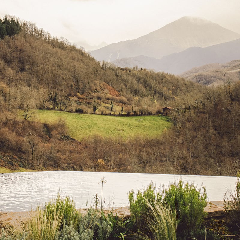 Palais du XVe siècle dressé dans le parc naturel de Las Ubiñas, Solo Palacio cultive la philosophie wabi-sabi à travers onze appartements réservés aux adultes où antiquités européennes côtoient objets asiatiques sur des murs de pierre brute. La piscine à débordement contemple la vallée forestière tandis que Solo Bistró célèbre les champignons locaux en cuisine asturienne inventive. L'établissement reverse ses bénéfices à des projets environnementaux régionaux.