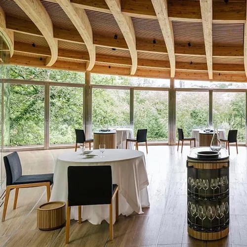 Dans les collines surplombant Saint-Sébastien, le laboratoire doublement étoilé d'Andoni Luis Aduriz fait de chaque repas une remise en question. Menu unique sans ordre établi, plats à manger avec les doigts, créations conceptuelles où une fausse peau de gélatine de cidre se pose sur le visage du convive. Un glossaire accompagne l'expérience, mi-ludique, mi-cérébrale. Pour gastronomes en quête de confrontation plutôt que de réconfort.