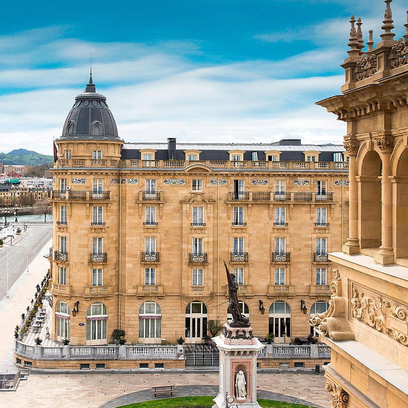 Ce palace Belle Époque domine les rives de l'Urumea, colonnes de marbre et lustres ouvragés intacts après une restauration minutieuse. Les 136 chambres conjuguent raffinement d'époque et confort actuel : salles de bains en marbre, terrasses privées, perspectives sur la mer Cantabrique. Des vélos sont mis à disposition pour sillonner les bars à pintxos, et les animaux de compagnie sont les bienvenus.