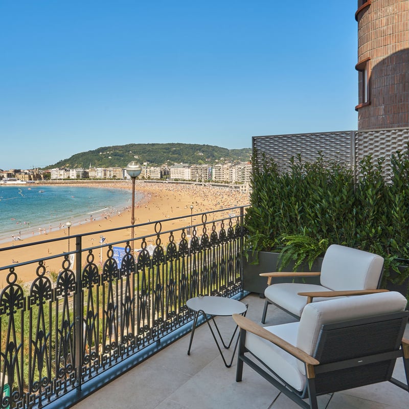 Dernière villa du XIXe siècle préservée sur le front de mer de La Concha, cette adresse exclusivement adulte compte vingt-cinq chambres aux lignes contemporaines rehaussées de bleus atlantiques. Les suites côté mer s'ouvrent par de grandes baies vitrées sur la baie, certaines prolongées de terrasses privatives. La table doublement étoilée Amelia, signée Paulo Airaudo, insuffle des accents argentins et italiens jusqu'au petit-déjeuner.