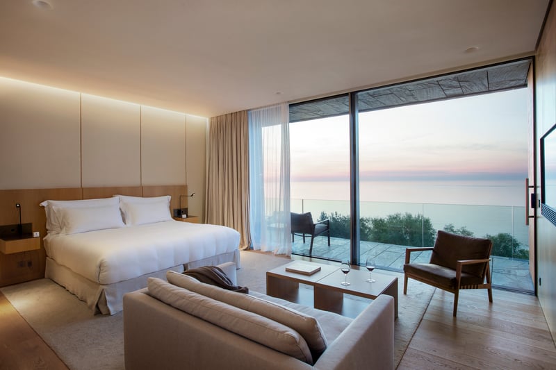 Sur les hauteurs du Monte Igueldo, Pedro Subijana a adossé à son restaurant triplement étoilé un hôtel d'architecture résolument contemporaine : vingt-deux chambres minimalistes d'au moins cinquante mètres carrés, la plupart dotées de baignoires profondes face aux baies vitrées dominant la côte cantabrique. Le spa en pierre évoque les thermes alpins, tandis que les suites offrent des bassins privatifs. Établissement réservé aux adultes.