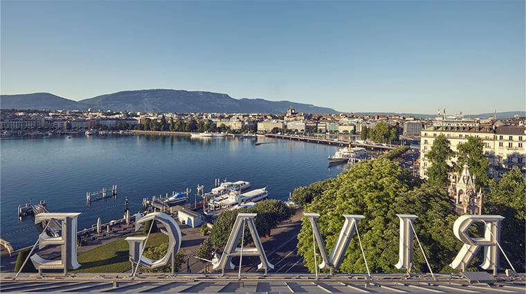 Genève s'étire le long de la rive sud-ouest du Léman, le Jet d'Eau marquant le front d'eau tandis que le Salève ferme l'horizon au sud. La Vieille-Ville grimpe depuis le Rhône, ses ruelles pavées bordées d'antiquaires et d'horlogers dont le savoir-faire définit la réputation mondiale de la cité. Le long du quai du Mont-Blanc, les grands hôtels accueillent diplomates et têtes couronnées depuis la Belle Époque, façades intactes, intérieurs discrètement modernisés.