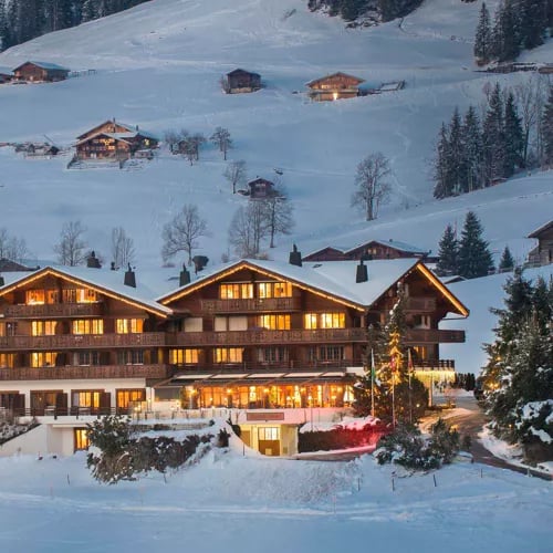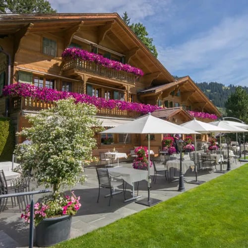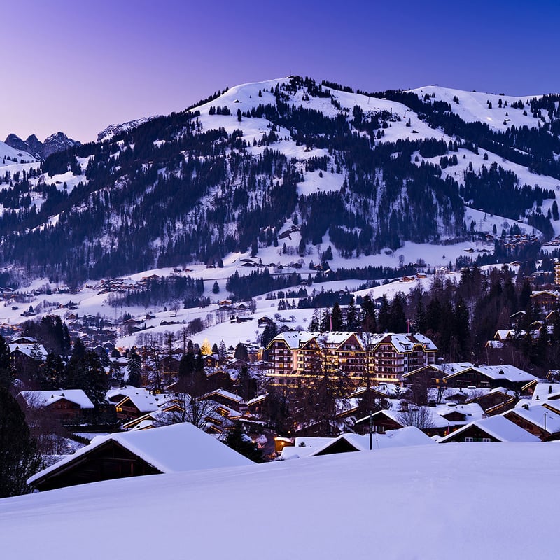 Gstaad occupe une position singulière dans l'Oberland bernois : un village de trois mille habitants permanents qui accueille chaque hiver une clientèle internationale, attirée par sa promenade piétonne et ses versants exposés plein sud. La rue principale conserve son architecture traditionnelle en bois—enseignes peintes à la main, balcons fleuris de géraniums—tout en abritant discrètement certains des établissements les plus raffinés de Suisse. Au-delà du centre, les hameaux de Schönried et Saanenmöser offrent un accès direct au domaine skiable du Glacier 3000.