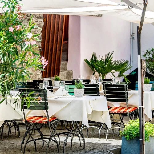 Ancienne bâtisse de pierre isolée au milieu des vignobles de Jenins, Alter Torkel cultive l'art du vin grâce à une sélection tournante servie au verre selon la philosophie « Fine Wineing ». La cuisine contemporaine met en valeur les produits régionaux de saison dans un cadre rustique aux accents modernes. Aux beaux jours, la terrasse panoramique surplombant la vallée prolonge cette immersion viticole.