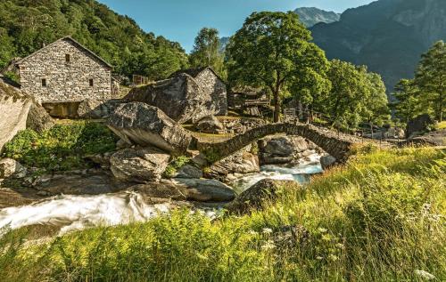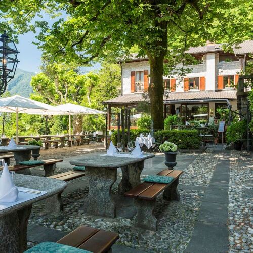 Sous les voûtes de pierre et aux tables de granit typiques du Tessin, cette maison familiale perpétue depuis plus de trente ans une cuisine méditerranéenne soignée. La deuxième génération propose plusieurs menus dégustation, dont une version végétarienne, complétés par des suggestions du jour. La terrasse ombragée, une cave bien garnie et deux chambres rustiques prolongent l'expérience avec charme.