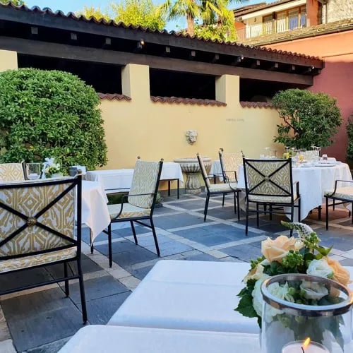 Dans un quartier résidentiel paisible de Losone, ce restaurant étoilé cultive une atmosphère chaleureuse sous l'égide d'un jeune couple passionné. La grande cheminée règne sur la salle à manger, tandis que les beaux jours déplacent le service vers un jardin fleuri ponctué d'œuvres d'art. Le menu surprise « Lascio a voi » révèle une cuisine traditionnelle aux accents créatifs, accompagnée d'une belle carte de vins tessinois.