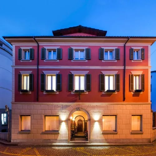 Dans le quartier historique d'Ascona, cette adresse familiale de trente chambres cultive un esprit méditerranéen, entre motifs colorés et cour intérieure parfumée de glycine. Sur le toit, une petite piscine et une terrasse solarium contemplent le lac. Le samedi soir, le jazz s'invite au Cortile dei Beati, tandis que le bar à vins Cantinaccio prolonge l'atmosphère chaleureuse. Accueil des animaux et borne de recharge électrique.