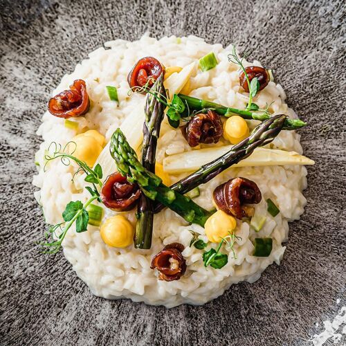Au sein du domaine de Castello del Sole, les chefs Mattias Roock et Leopold Ott composent une table étoilée Michelin où les produits du potager maison ancrent chaque assiette dans le terroir tessinois, rehaussé d'inflexions méditerranéennes. La terrasse, retirée et paisible, prolonge l'élégance du moment, tandis que la cave du sommelier Sergio Bassi invite à de longs accords mets-vins.