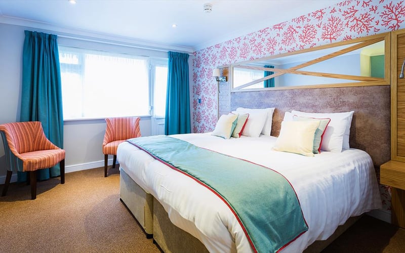 À l'ombre du château de Yarmouth, cette auberge du XVIIe siècle déploie dix-sept chambres aux boiseries d'époque, certaines ouvrant sur des balcons face au Solent, d'autres sur un jardin paisible. La brasserie séduit par une cuisine affirmée, tandis que les familles apprécient la chambre dédiée avec lits superposés, bibliothèque enfantine et carte raffinée proposant saumon fumé et brochettes de crevettes.
