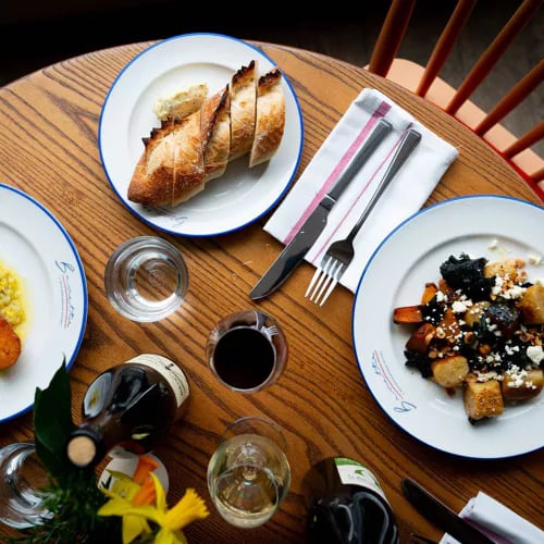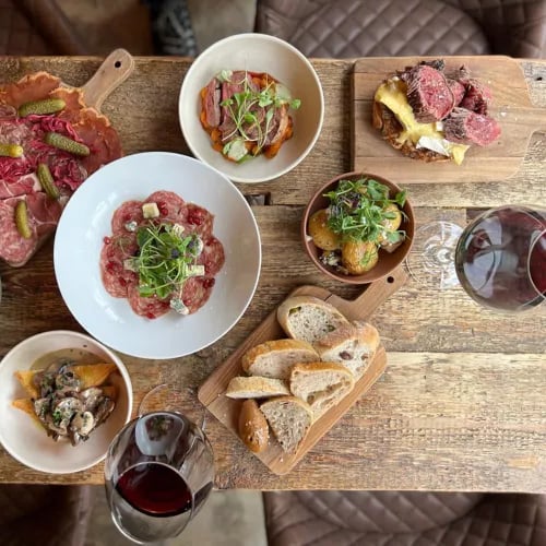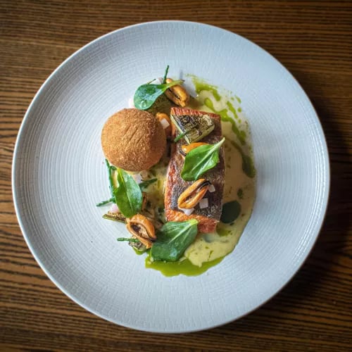 Derrière sa façade de pierre traditionnelle, cette adresse de Sowerby Bridge dévoile une salle résolument contemporaine où cuisine ouverte et four à bois captent tous les regards. La carte, distinguée d'un Bib Gourmand, vagabonde entre boquerones et croquetas d'inspiration espagnole, tacos mexicains et toast de crevettes façon bánh mì vietnamien, avant de s'achever sur un sticky toffee pudding tout britannique. Des assiettes colorées, généreuses et d'un excellent rapport qualité-prix.