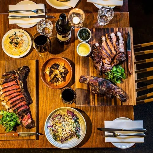 Installé dans un ancien moulin reconverti, ce restaurant britannique moderne fait de la cuisson au feu de bois son identité, grâce à un grill importé des États-Unis. La cuisine ose les associations franches : huîtres à la nduja, queues de cochon croustillantes glacées au gochujang, imposante côte de bœuf d'un kilo. Les végétariens trouvent ici une carte généreuse, tandis qu'un beer hall et un bar à cocktails prolongent la soirée.