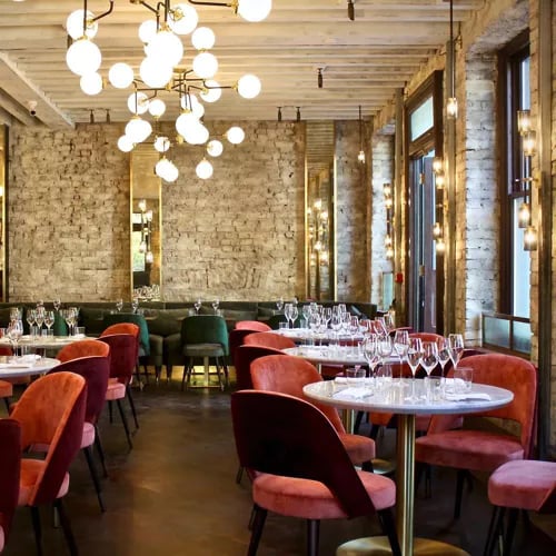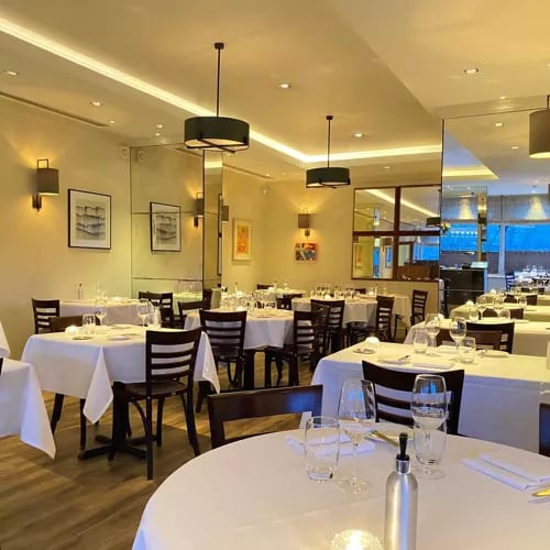 Au sommet du South Place Hotel, Angler cultive une philosophie rare : laisser le produit s'exprimer. Les poissons d'exception, tel le cabillaud de Newlyn rôti, arrivent dans l'assiette sans artifice, magnifiés par une cuisson d'une précision étoilée. Sous un plafond ouvragé ou sur la terrasse dominant la City, cette table célèbre les trésors de la pêche britannique avec une sobriété maîtrisée.