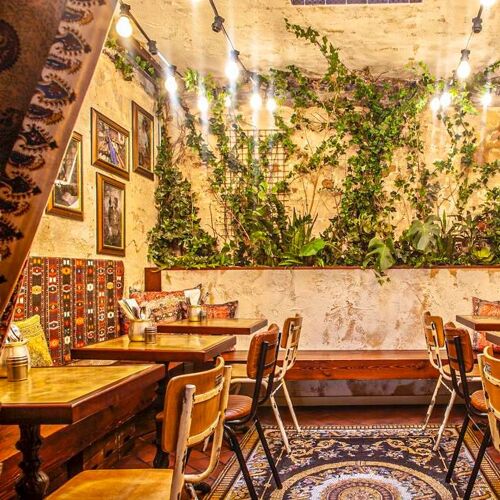 Berenjak transpose l'atmosphère des échoppes à kabab de Téhéran dans un espace intimiste de Soho aux murs de brique apparente. Installé au comptoir face au tandoor et au mangal, le convive assiste à la préparation des kababs d'épaule d'agneau et d'aubergines calcinées à la braise. Distingué par un Bib Gourmand, l'établissement propose une cuisine persane généreuse dans une ambiance chaleureuse et animée.