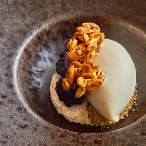 Chez Humo, ni gaz ni électricité : seuls la fumée, la flamme et les braises façonnent une cuisine indienne aux accents japonais d'une remarquable inventivité. Les produits britanniques d'exception — pétoncles des Orcades notamment — sont magnifiés par un choix méticuleux de bois selon chaque ingrédient. La table du chef permet d'observer cette maîtrise du feu primitif dans toute sa précision.