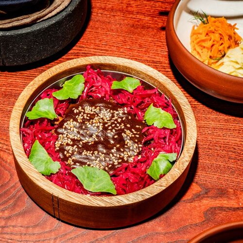 Santiago Lastra, le chef derrière le célèbre KOL, transpose sa vision mexicaine sur Heddon Street avec une interprétation généreuse de la fonda familiale traditionnelle. La salle lumineuse sur deux niveaux, habillée de bois clair, de végétation et de carreaux de céramique peints à la main, accueille des plats à partager comme les carnitas fondantes accompagnées de tortillas fraîches. Son cheesecake signature conclut le repas avec élégance.