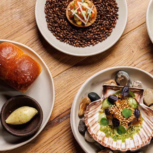 Derrière une devanture discrète de Dalston, Casa Fofō refuse les menus imprimés—les convives s'en remettent aux improvisations de la cuisine ouverte. Les chefs maîtrisent l'art de la découpe, déclinant l'agneau en trois services : bouillon d'abord, puis différentes pièces. Techniques de fermentation et salaisons révèlent un maquereau de Cornouailles d'une profondeur remarquable, suivi d'anolini aux amandes. Accord mets-vins naturels recommandé. Une étoile Michelin.