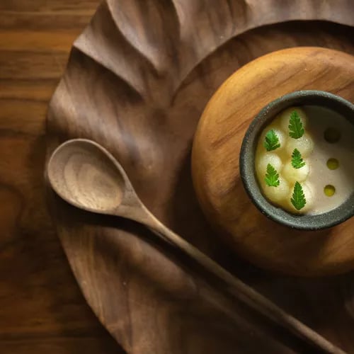 Ancien presbytère aux murs blanchis à la chaux, aux portes du parc national des Cairngorms, Killiecrankie House propose un menu surprise où les produits écossais rencontrent les techniques japonaises. Le tofu d'avoine maison, accompagné d'une sauce fermentée, de fèves et de piment, illustre cette fusion singulière. Le bar élégant, garni de whiskies écossais et japonais, précède une salle à manger d'inspiration nordique où les légumes du jardin tiennent le premier rôle.