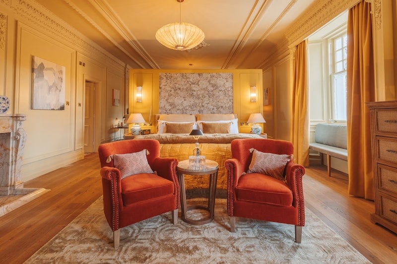 Aux portes du parc national des Cairngorms, cette maison de cinq chambres place la table au centre de tout. Le menu dégustation tisse les codes du kaiseki japonais à travers le terroir écossais, servi face aux boisés environnants. Lits à baldaquin, baignoires îlots, bar intimiste coiffé d'un lustre rose en verre de Murano, bibliothèque de whiskies — un refuge pour gastronomes, réservé aux adultes.
