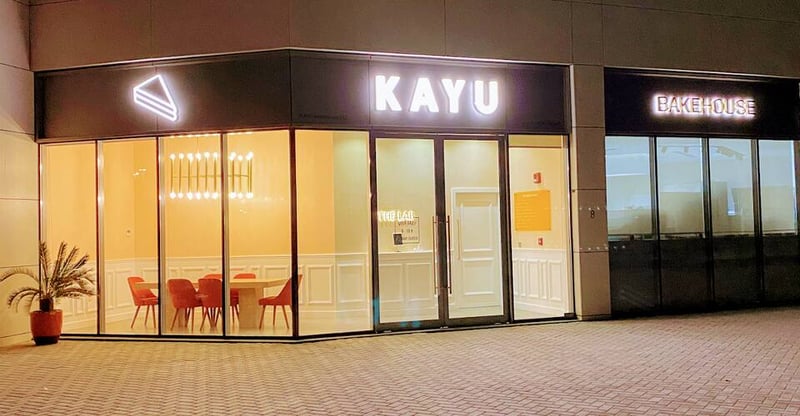 Derrière le comptoir, un 'laboratoire' où la magie de la pâtisserie opère loin des regards. L'espace de service, bien que petit, est lumineux et accueillant, décoré de murales de dessins animés quelque peu aléatoires. KAYU est l'endroit idéal pour emporter croissants, gâteaux et pâtisseries à déguster chez soi, ou à savourer sur le pouce. Et pour ceux qui convoitent leurs célèbres croissants, il est conseillé de précommander ou d'arriver dès l'ouverture à 8 heures pour s'assurer d'en obtenir.