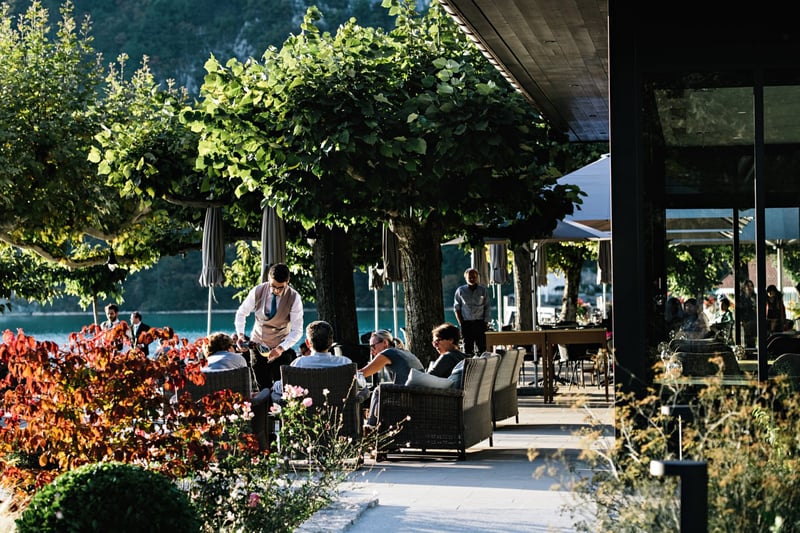 L'atmosphère élégante de l'Auberge se reflète dans sa salle à manger contemporaine et dans l'accueil chaleureux de son équipe. Les mets raffinés, comme les écrevisses du Lac d'Annecy ou le ris de veau savamment préparé, sont accompagnés d'une carte des vins exceptionnelle, mettant en lumière les trésors viticoles de la Savoie historique.