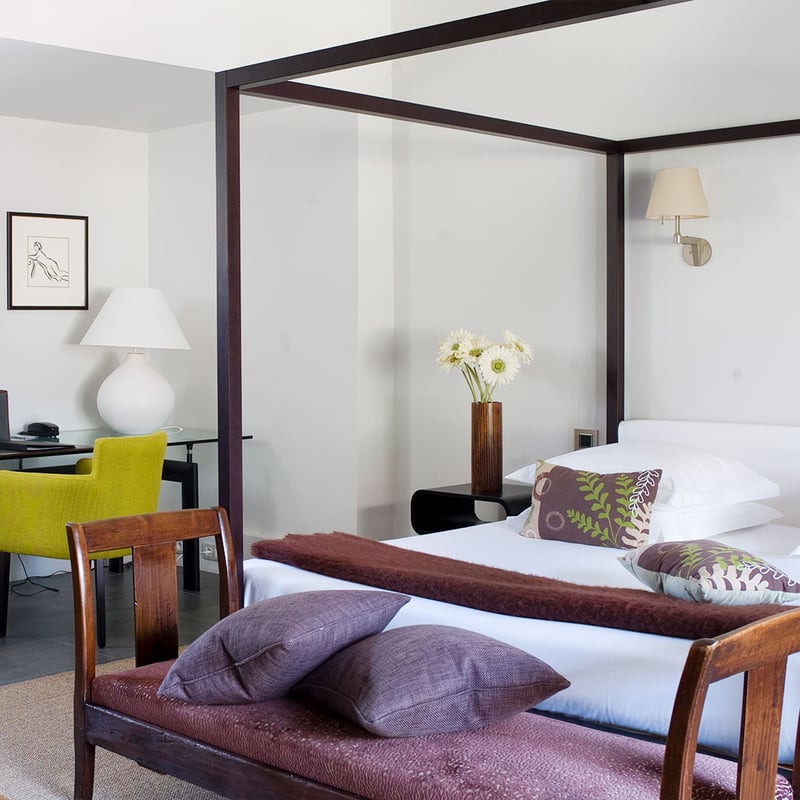 Située au cœur d'Avignon, La Divine Comédie est un hôtel particulier exceptionnel, niché dans un jardin verdoyant de 2,600 m². Cette demeure, décorée avec passion, allie harmonieusement meubles anciens, moulures élégantes, sols en pierres authentiques et touches de design contemporain, créant une ambiance à la fois classique et moderne.