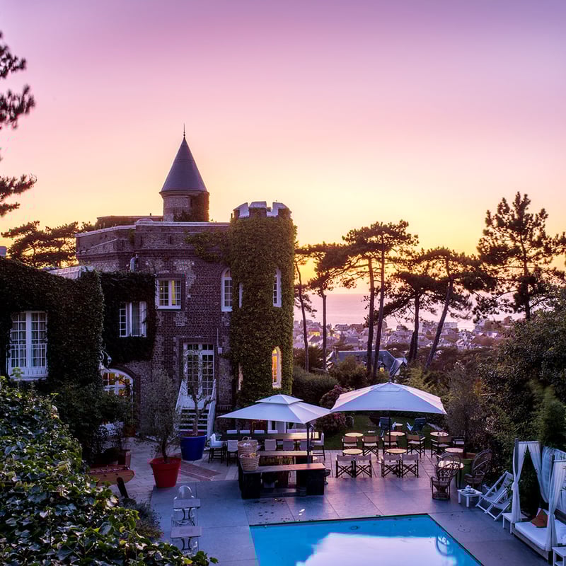 Le Donjon - Domaine Saint Clair, un joyau hôtelier situé à Étretat, invite à découvrir la riviera normande. Construit en 1862, ce château anglo-normand et sa villa attenante de 1889 offrent une atmosphère de maison de famille. À moins de 10 minutes à pied du village, il se dresse comme un belvédère spectaculaire, offrant des vues imprenables sur les falaises célèbres et la mer.