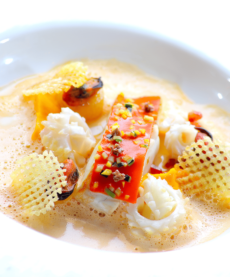 Chaque visiteur est invité à un voyage gustatif exceptionnel, guidé par des plats innovants et une alchimie d'épices, de fumage et de torréfaction. Les 31 plats du menu reflètent une maîtrise culinaire, avec des créations telles que l'anguille fumée dans un bonbon au chocolat ou la bisque de crustacés sur gâteau de semoule à la fleur d'oranger.