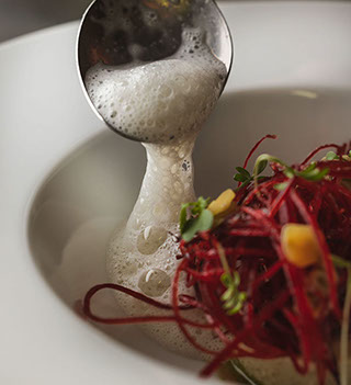 L'atmosphère de La Réserve Rimbaud se distingue par son charme romantique, apprécié des Montpelliérains. La terrasse surplombant le Lez et la grande salle lumineuse ajoutent à l'attrait de ce lieu, parfait pour un dîner d'affaires ou une sortie romantique. Le menu de midi à 45 € propose des plats raffinés comme le gaspacho d'asperges vertes, la selle d'agneau rôtie, et le vacherin exotique, tous présentés avec une touche d'originalité.